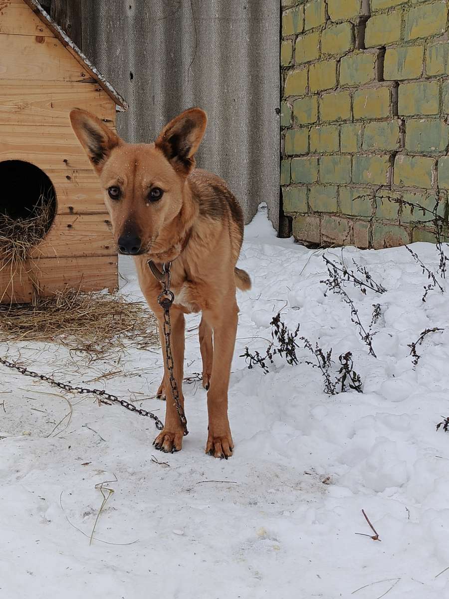 Отдам собаку в добрые руки. Девочка, яркое, рыжее солнышко среднего роста , общительная, возраст около 1 года, к цепи приучена, готова гулять на поводке, если подарите ей эту возможность. Стерилизована, привита. Тел