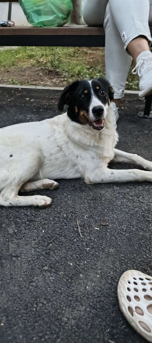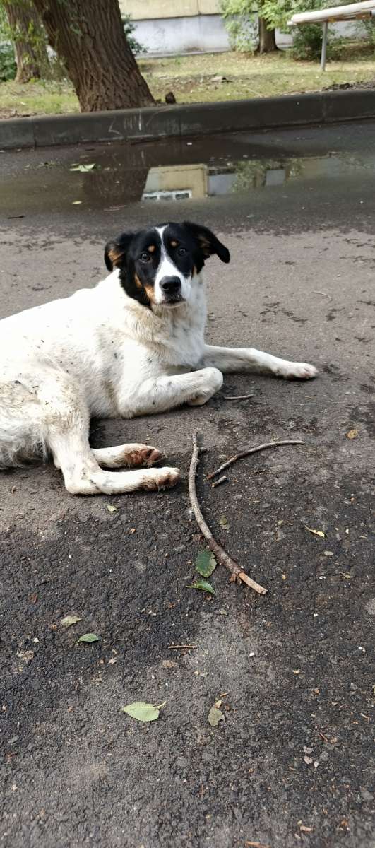 Средних размеров собака ищет преданного хозяина, пока живёт во дворе